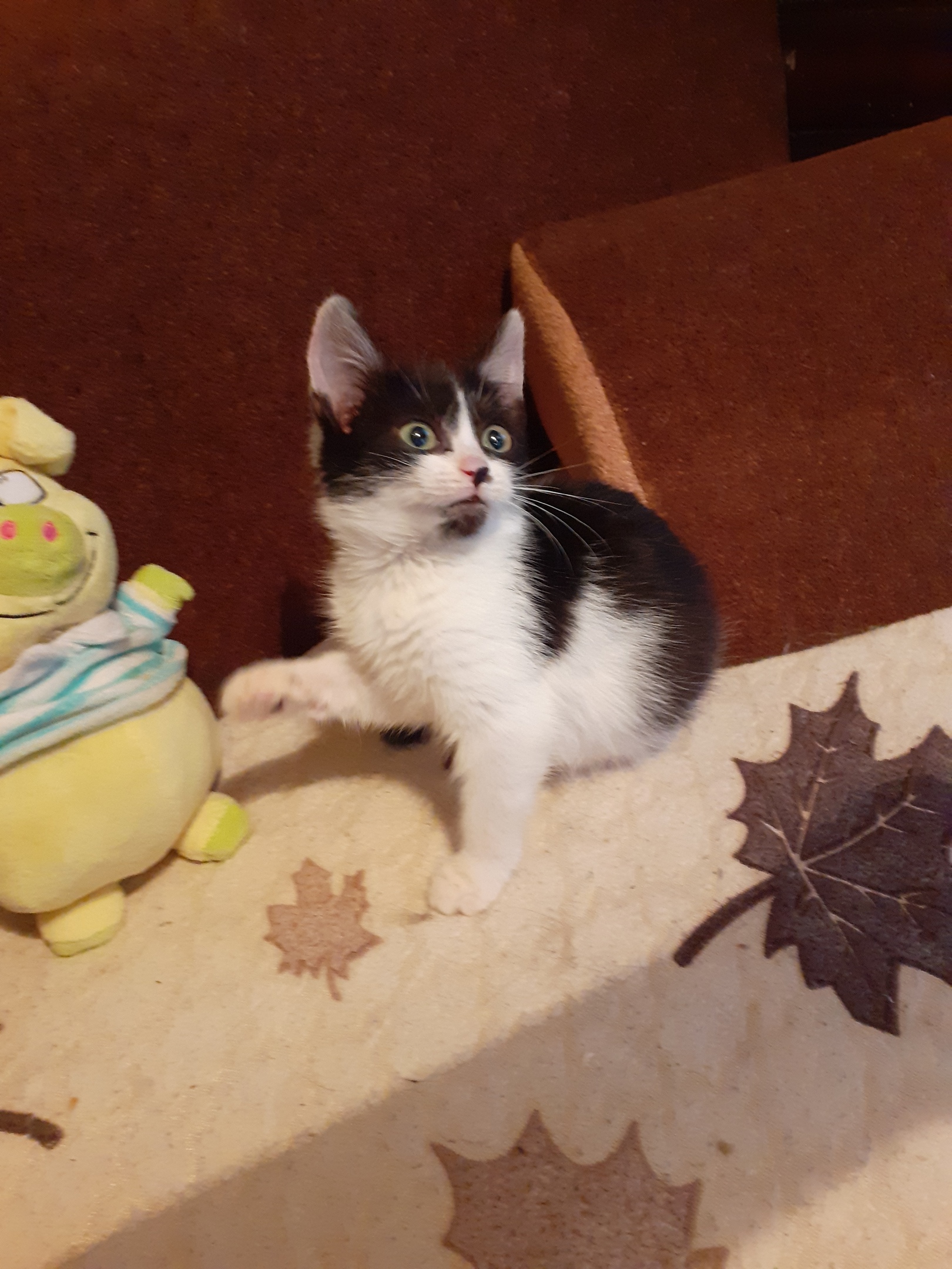 Котёнок, показывая хозяевам, что ему скучно одному, даже не мог предположить какого друга ему подгонят, оказалось, что это плюшевый поросёнок.